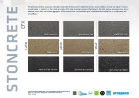 Stoncrete EFX est un système de mortier époxy appliqué à la truelle qui a l'aspect et le toucher du béton poli, mais avec une durabilité et des performances plus importantes. Développé pour les espaces commerciaux tels que les couloirs d'écoles, les espaces de bureaux et les magasins, il est également bien adapté aux halls et aux couloirs des installations industrielles. Stoncrete EFX peut être utilisé pour un nouveau revêtement de sol ou pour refaire la surface d'un sol existant (par exemple, un béton poli endommagé). Le design attrayant de Stoncrete EFX est disponible en cinq couleurs de base et trois agrégats décoratifs uniques. Les agrégats décoratifs sont composés à 100 % de verre miroir, d'un mélange de verre ambré recyclé et de quartz naturel extrait localement. Ils sont disponibles en finition mate, satinée ou semi-brillante. Vous aimez le béton poli ? Vous aimerez encore plus ceci.